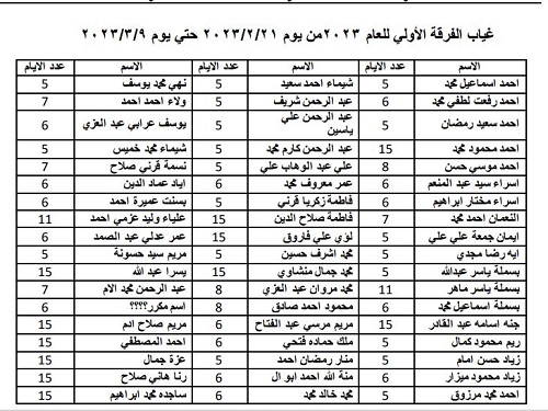 Noms des étudiants et taux d’absence pour la première et la deuxième année.