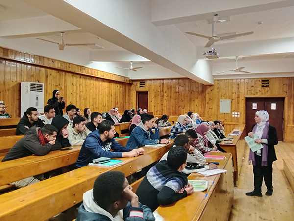 Et du prof.Dr.Nohair Al-Shoshani, directrice de l'unité de lutte contre la violence à l'égard des femmes à l'université, la visite de 5 minutes a été mise en œuvre pour les étudiants de la deuxième année de la Faculté de médecine dentaire dans le cadre de la campagne de 16 jours. et sous le slogan