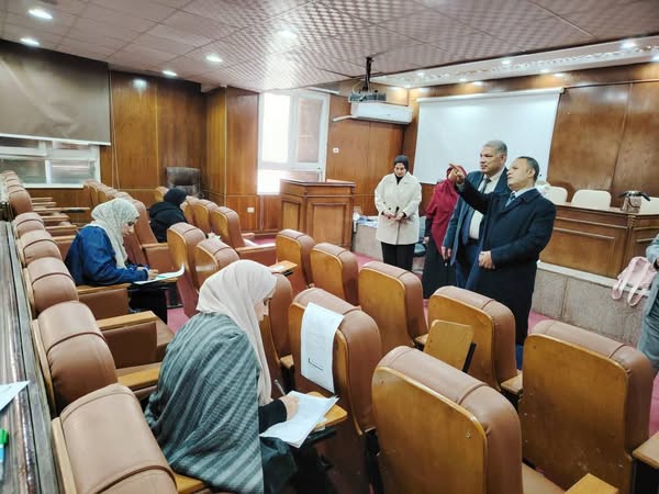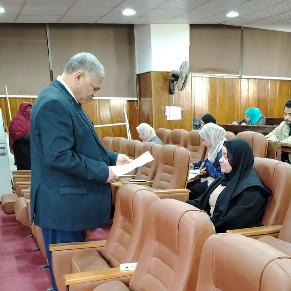 Sous le patronage du Prof.Dr. Yasser Magdy Hatata ; Le président de l'université, le prof.Dr. Arafa Sabry Hassan ; Le vice-président de l'Université des études supérieures et de la recherche a inspecté les examens de troisième cycle du premier semestre de l'année universitaire 2024/2025 au Collège du service social, En présence du Prof.Dr. Ahmed Hosni ; Doyen du Collège, du Prof.Dr. Nasser Owais ; Vice-doyen du Collège des études supérieures et de la recherche du Prof.Dr. Youssef Abdel Hamid ; Vice-doyen du Collège pour l'éducation et les affaires étudiantes, de la Prof.Dr. Nadia Abdel Aziz Hegazy ; Vice-doyenne du Collège pour les affaires du service communautaire et du développement environnemental, et du Prof.Dr. Muhammad Jamal Al-Din ; Ancien doyen du Collège et responsable du contrôle des études supérieures, Ceci s'ajoute aux professeurs de cours ; Afin d'assurer le bon déroulement du processus d'examen, le jeudi 16 janvier 2025 après JC.