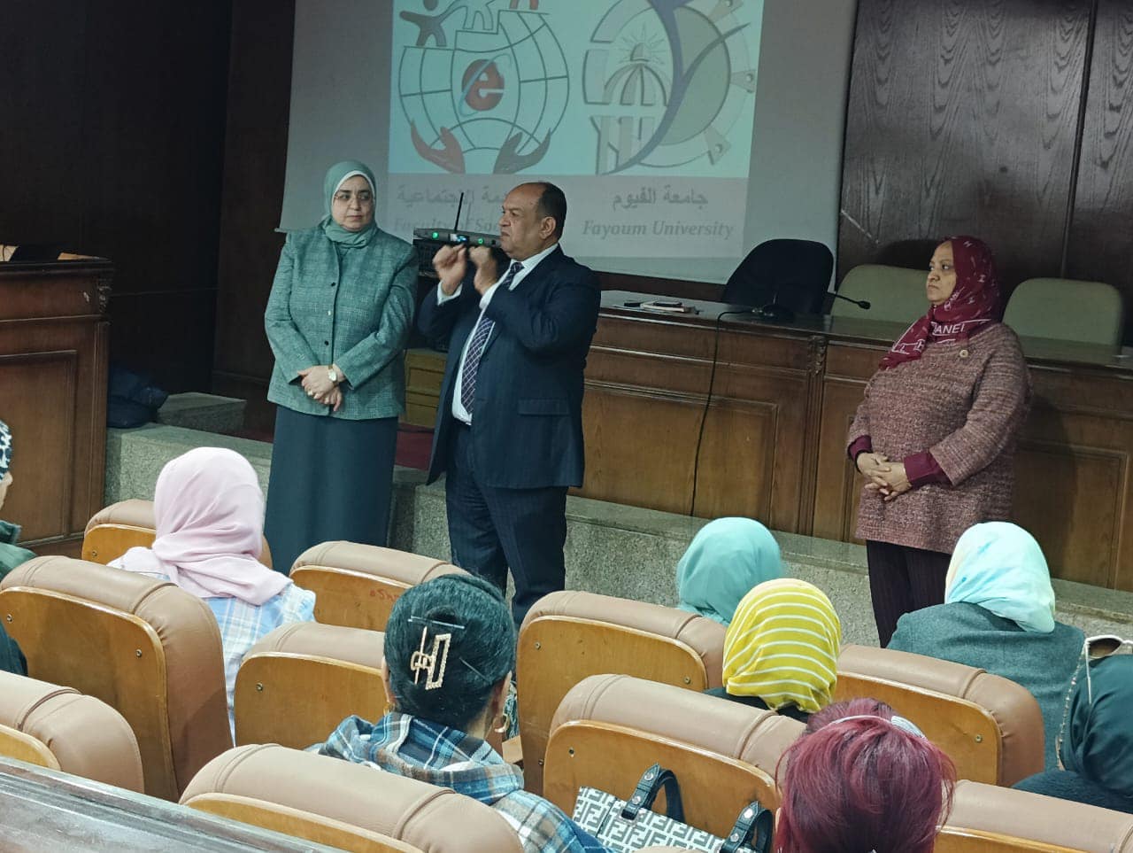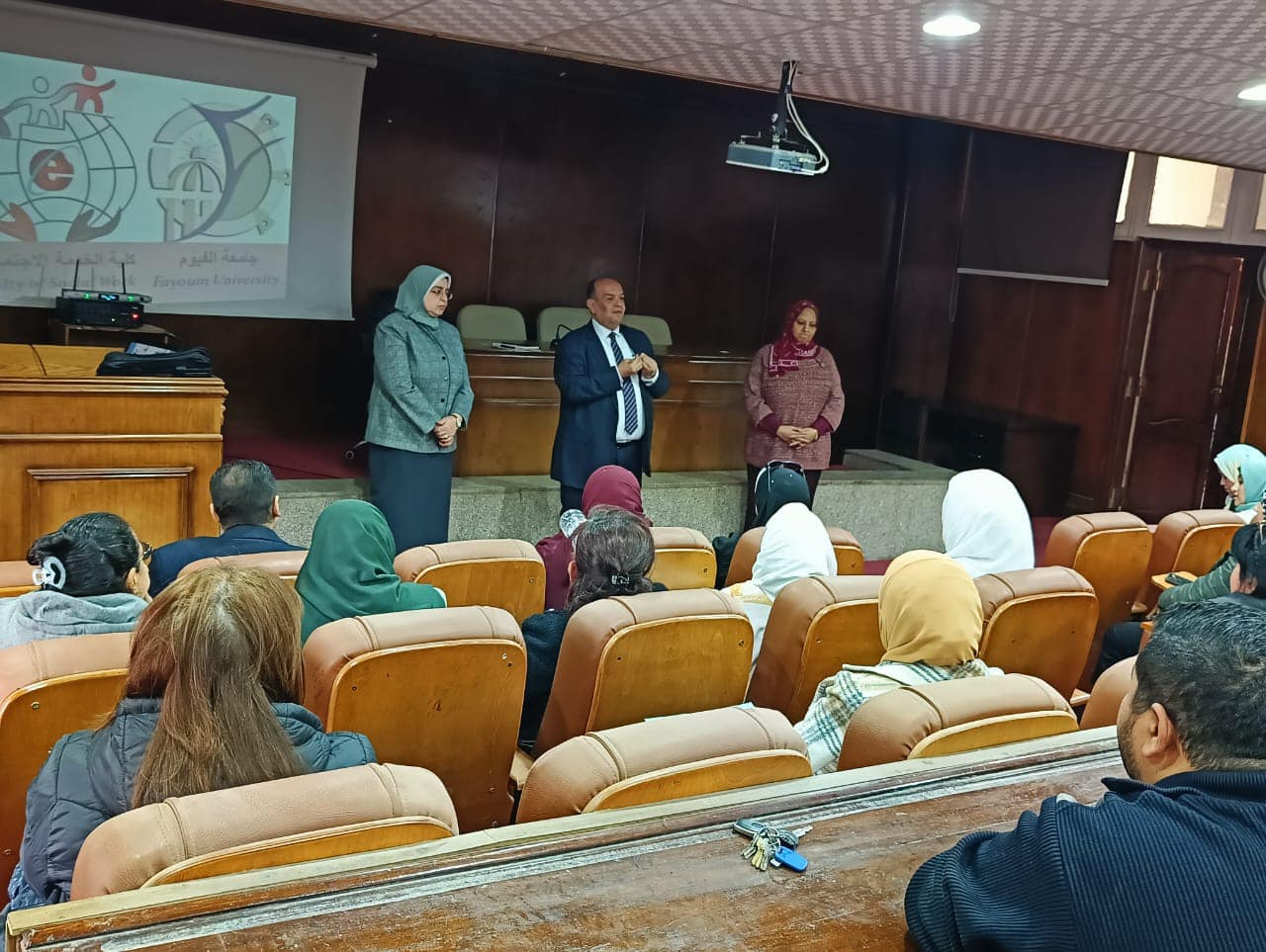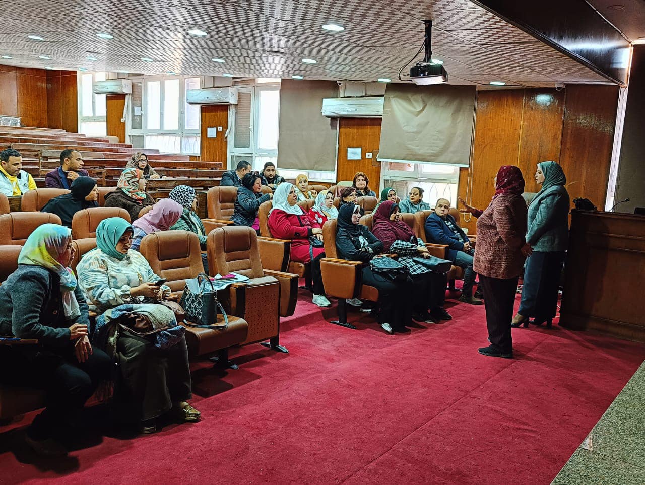 Où la prof.Dr. Nahla Abdel Rahim, superviseuse générale de la formation sur le terrain, a donné une conférence, expliquant le plan de formation sur le terrain au cours du deuxième semestre et leur vision du plan de formation et mettant l'accent sur l'amélioration des pratiques de formation sur le terrain et sur le dépassement des difficultés rencontrées lors de la formation.