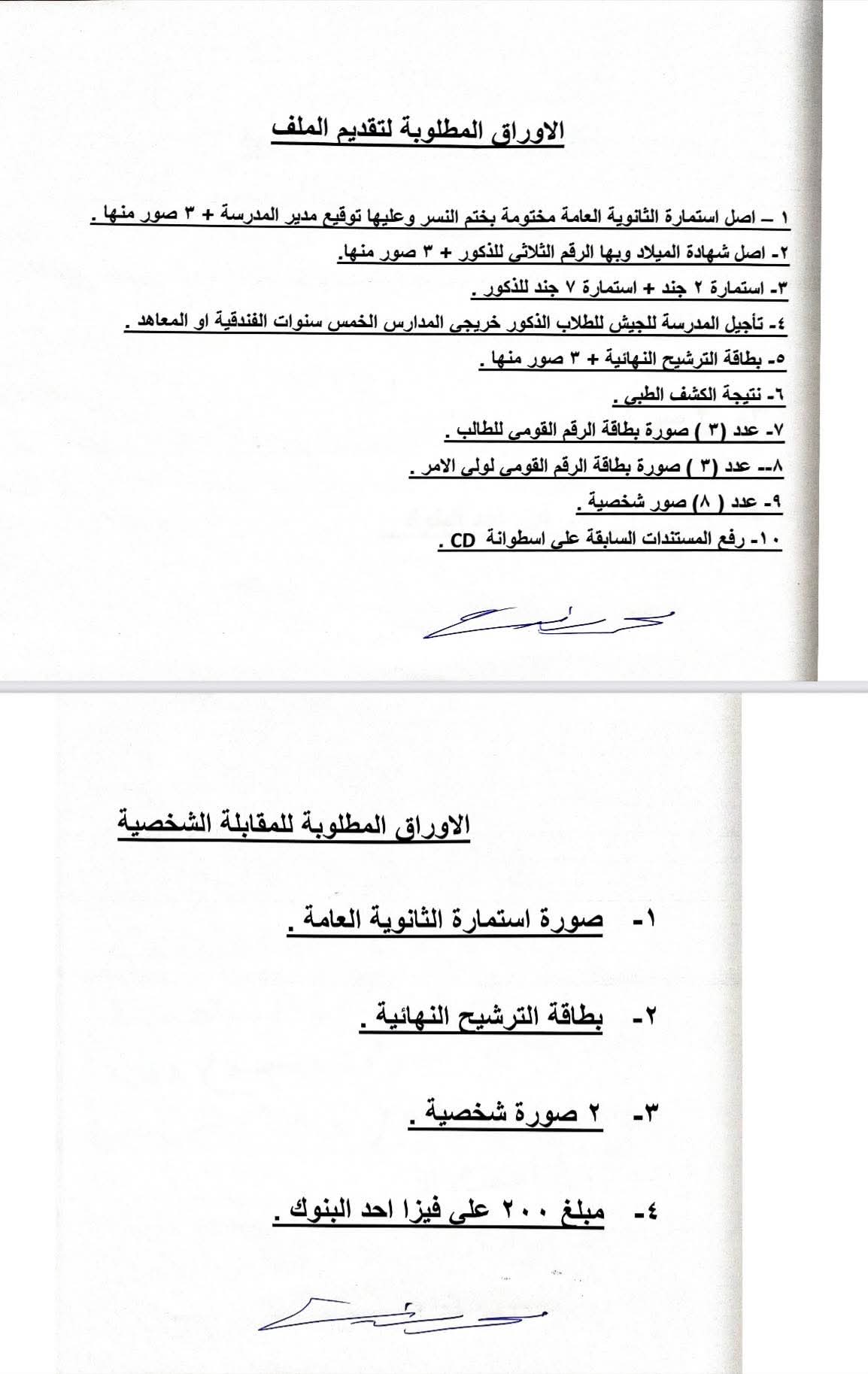 Documents requis pour déposer un dossier et un entretien personnel pour la faculté de Tourisme et d'Hôtellerie pour l'année académique. 2025/2026