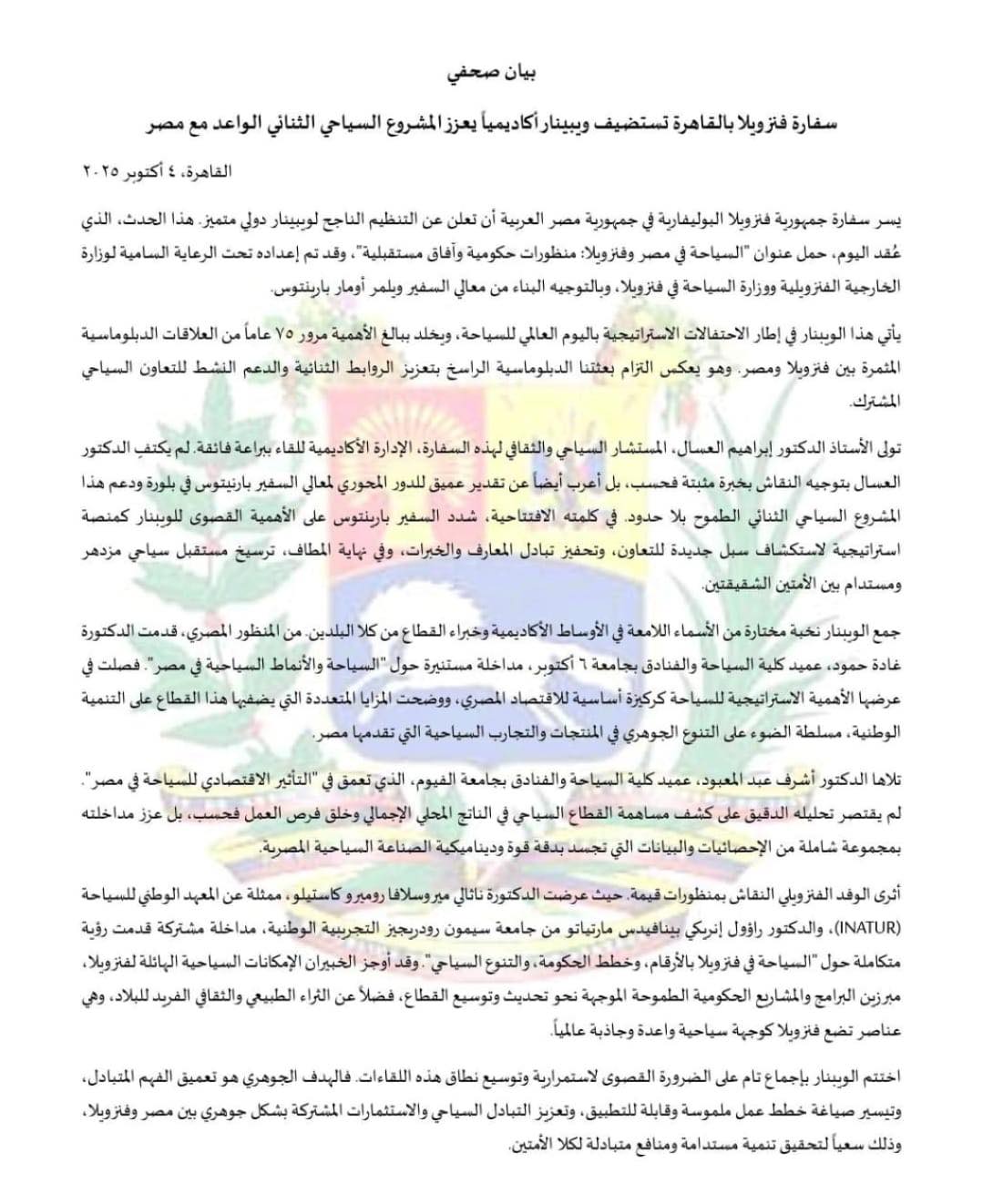 L'ambassade du Venezuela au Caire organise un webinaire académique faisant la promotion du prometteur projet touristique bilatéral avec l'Egypte.