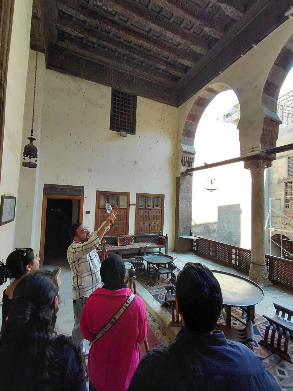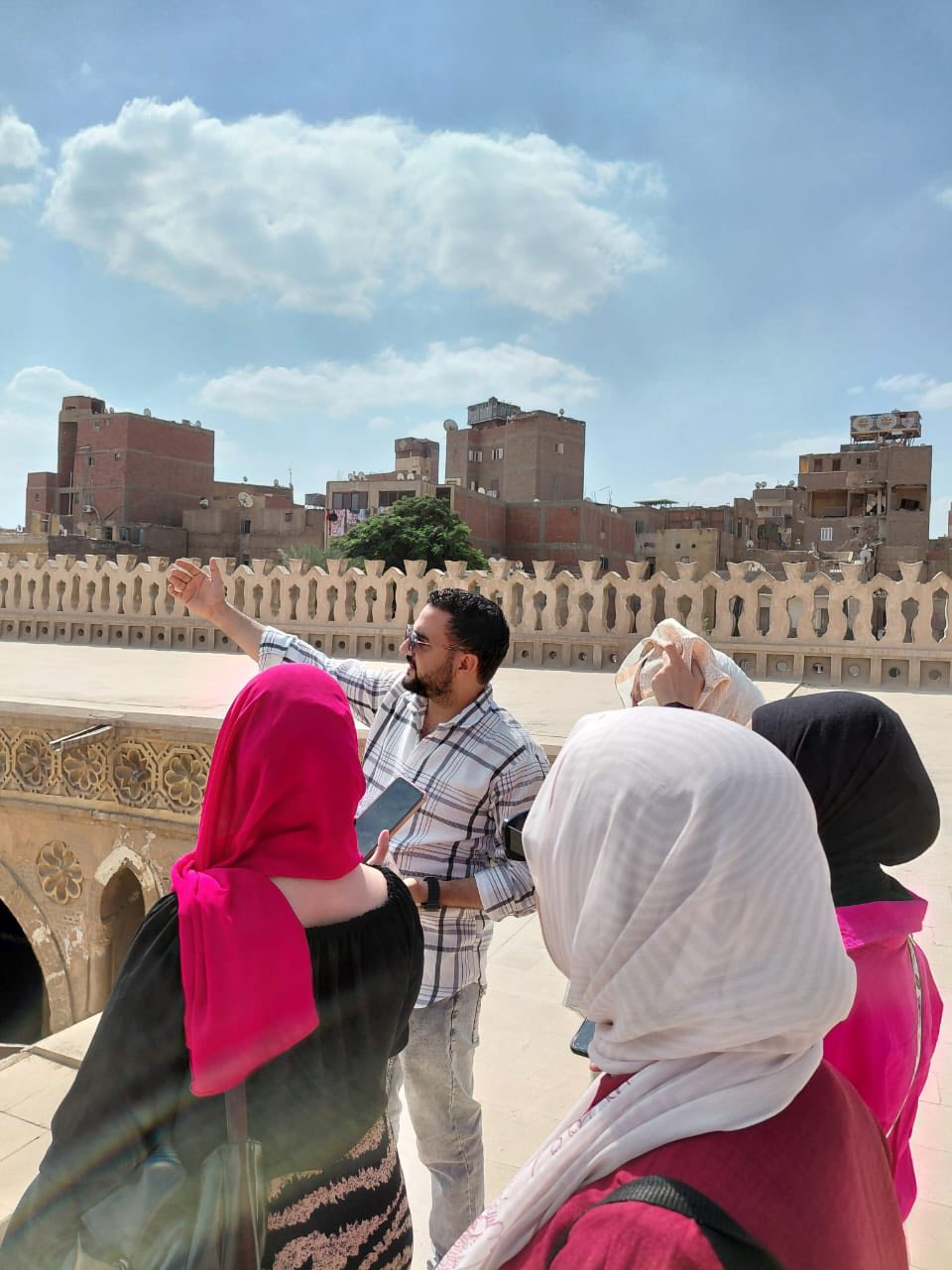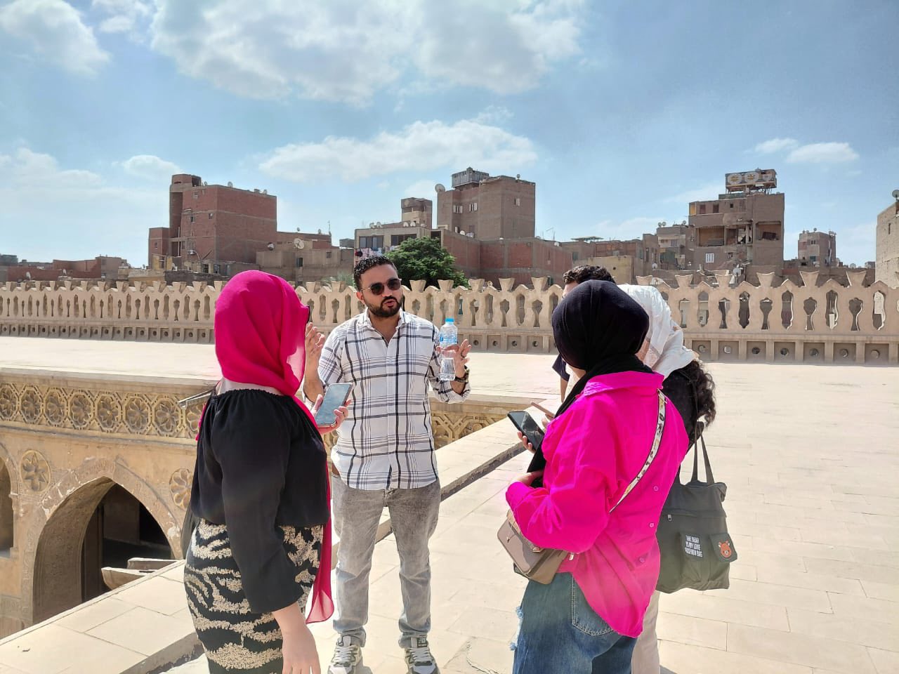La visite de terrain des étudiants de quatrième année du département d'orientation touristique a débuté le samedi 11 octobre 2025, en direction de deux sites archéologiques importants du Caire (district de Sayyida Zeinab) :