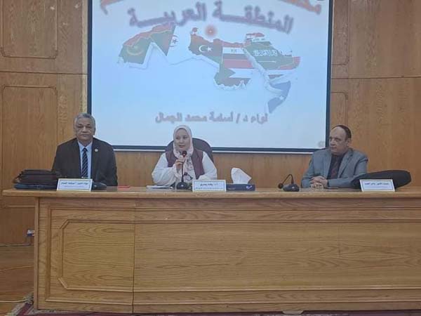 تناول اللواء دكتور أسامة الجمال الجلسة الأولى عن مخططات تقسيم الشرق الأوسط ودور أمريكا فى الازمات العربية والأهداف والمصالح فى المنطقة العربية منها السيطرة على منابع البترول والحفاظ على بقاء إسرائيل واستمرار سير الملاحه البحرية العالمية وضمان بقاء المنطقة سوقا رئيسيا لتصريف المنتجات الغير عربية واشعال الصراعات المسلحة .
