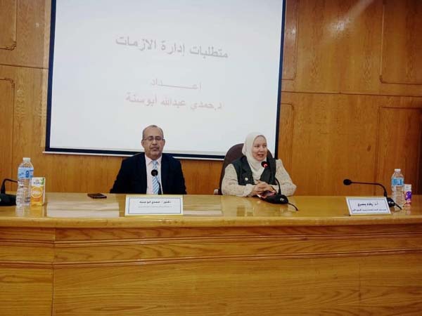 وتحدث د. حمدي أبو سنه حول متطلبات إدارة الأزمات، وتتمثل في تكوين فريق لإدارة الأزمة يتخذ خطوات غير تقليدية من خلال التخطيط الجيد للعمل على حلها، موضحاً أن المشكلات الصغيرة قد تتحول لأزمات إذا لم يتم التعاطي معها بشكل إيجابي وحاسم في القضاء على أسباب المشكلة.