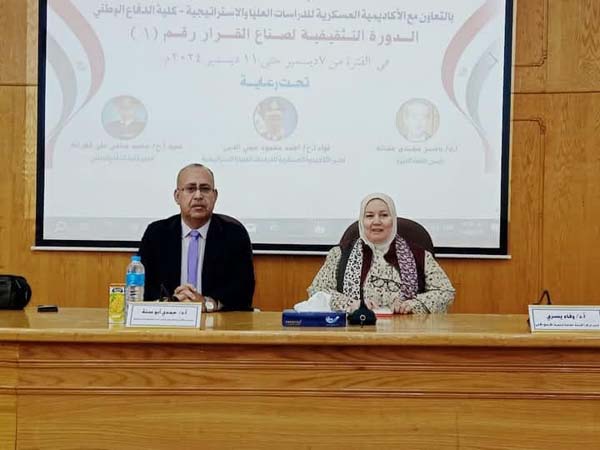 تحت رعاية الأستاذ الدكتور ياسر مجدي حتاته رئيس جامعة الفيوم، واللواء أ.ح/أحمد محمود صفى الدين مدير الأكاديمية العسكرية للدراسات العليا والاستراتيجية، وإشراف اللواء أ.ح/ محمد سامى علي كفرانه مدير كلية الدفاع الوطني، والأستاذ الدكتور عاصم العيسوي نائب رئيس الجامعة لشئون خدمة المجتمع وتنمية البيئة والمشرف على قطاع التعليم والطلاب، استمرت فعاليات الدورة التثقيفية الأولى لإدارة الأزمات والكوارث بالتعاون مع الأكاديمية العسكرية للدراسات العليا والاستراتيجية، والتي ينظمها قطاع خدمة المجتمع وتنمية البيئة ومركز الخدمة العامة لتنمية المجتمع المحلي بالجامعة لليوم الثاني على التوالي؛ وحاضر خلال اليوم الثانى د. حمدي أبو سنه المحاضر بالأكاديمية العسكرية للدراسات العليا والاستراتيجية، بحضور أ.د. وفاء يسري مدير مركز الخدمة العامة بالجامعة لتنمية المجتمع المحلي،وا.محمد على مدير إدارة المؤتمرات والندوات بقطاع خدمة المجتمع وعدد من المتدربين المشاركين في الدورة من السادة أعضاء هيئة التدريس والإداريين والطلاب، وذلك اليوم الأحد 8/12/2024 بالمكتبة المركزية.