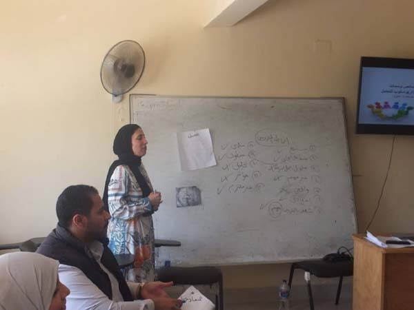 وتحدثت سيادتها عن مراحل العمل داخل برنامج التدريب ومتطلبات التدريب الناجح وبداية البرنامج التدريبي من تعارف، وعرض مهنى، وطرح الأهداف، ومناقشه التوقعات، وعقد اتفاق مهنى مستخدمه العديد من الأساليب التدريبيه منها (المناقشه والحوار والعصف الذهنى) وتناولت الاطار العام للبرنامج التدريبى وعوامل وأسس تقديم البرنامج ومهارات المدرب فى العرض والتقديم ومراحل العرض وإعدادةوالفترة الزمنيه للعرض ونصائح فى أعداد العروض ،وان يكون الاتصال حقيقى مع المتدربين والمدرب بوسائل وأساليب متعددة منها البشاشه والتفاؤل ووضع المدرب والمتدرب بالتدريب والاستخدام الفعال للمعنيات البصرية