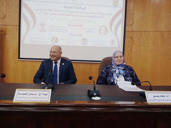 تحت رعاية الأستاذ الدكتور/ ياسر مجدي حتاته رئيس جامعة الفيوم واللواء أ.ح/عاطف عبد الرؤوف مدير الأكاديمية العسكرية للدراسات العليا والاستراتيجية، وإشراف الأستاذ الدكتور/ عاصم العيسوي نائب رئيس الجامعة لشئون خدمة المجتمع وتنمية البيئة، اللواء أ.ح/ حسام حسين عكاشة مدير كلية الدفاع الوطني ولواء أ.ح/ عادل العمدة بالأكاديمية العسكرية للدراسات العليا والاستراتيجية، انطلقت اليوم فعاليات الدورة التثقيفية للدراسات الاستراتيجية والأمن القومي بالتعاون بين جامعة الفيوم والأكاديمية العسكرية للدراسات العليا والاستراتيجية لواء أ.ح مهندس/ عادل محمود العمدة المستشار بالأكاديمية العسكرية للدراسات العليا والاستراتيجية عن موضوع " التحديات والتهديدات والمخاطر التى تواجه الدولة المصرية" ، بحضور ا.د/ وفاء يسري مدير مركز الخدمة العامة لتنمية المجتمع المحلي، بالجامعة وعدد من المتدربين المشاركين في الدورة من السادة أعضاء هيئة التدريس والإداريين والطلاب، وذلك اليوم الأحد الموافق 11 مايو 2025 وتستمر الدورة حتى 14 مايو 2025 بالمكتبة المركزية بجامعة الفيوم.
