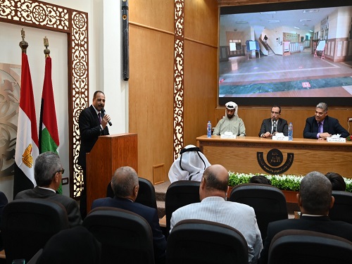 قدم أ.د ياسر مجدى حتاته، الترحيب نيابة عن مجلس جامعة الفيوم بالوفد الإماراتي برئاسة الشيخ محمد بن نهيان آل نهيان، مؤكدًا أن افتتاح مركز دراسات النقوش والخطوط التاريخية هو ثمرة تعاون بين جامعة الفيوم ودولة الإمارات العربية المتحدة الشقيقة. كما قدم الشكر لسمو الشيخة إليازية بنت نهيان آل نهيان، سفير فوق العادة للثقافة العربية لدى المنظمة العربية للتربية والثقافة والعلوم (إليسكو) بجامعة الدول العربية، على المساهمة الفعالة في إنشاء المركز الذى سيحقق إضافة فعالة ومثمرة لجهود البحث العلمى والتوثيق فى مجال النقوش والمخطوطات.