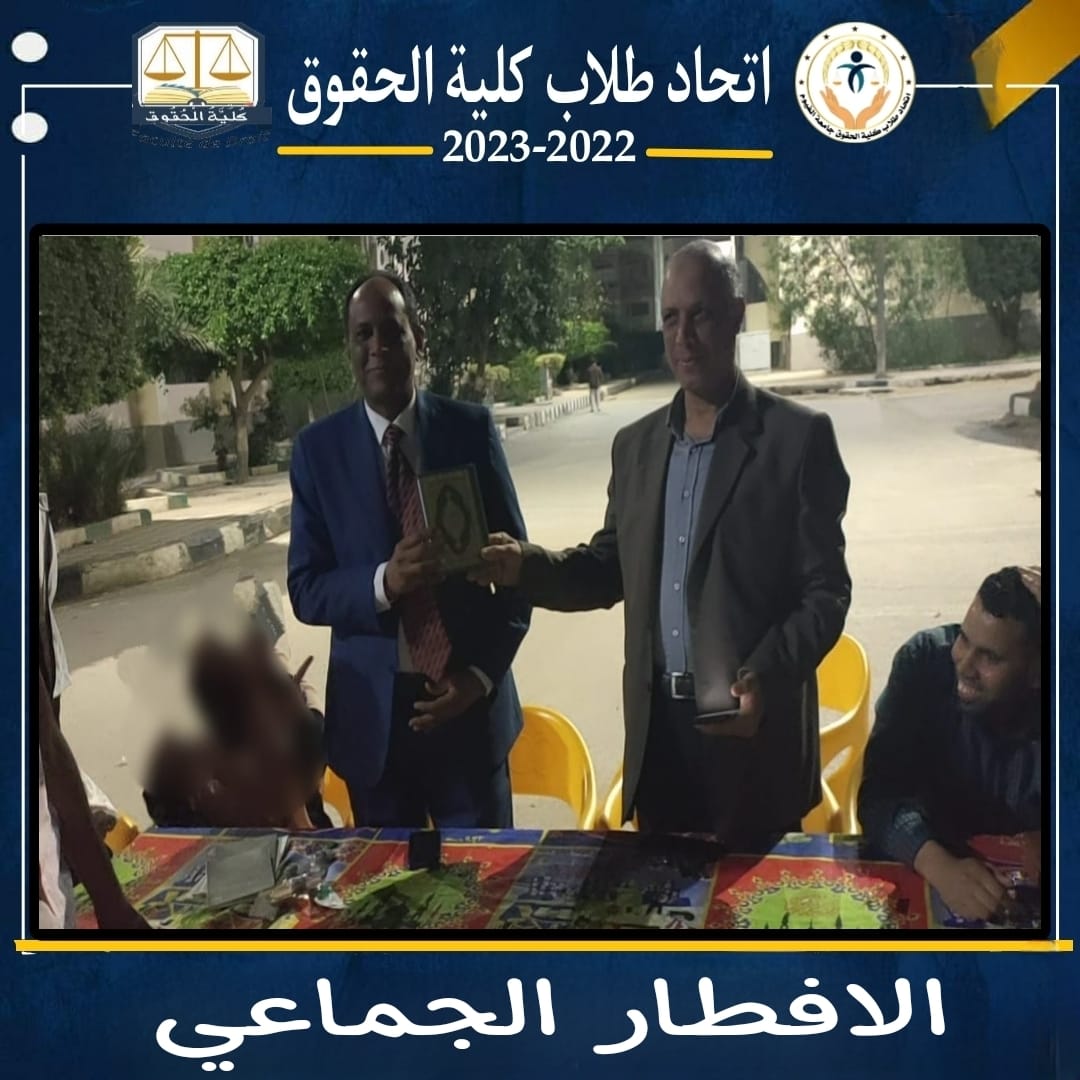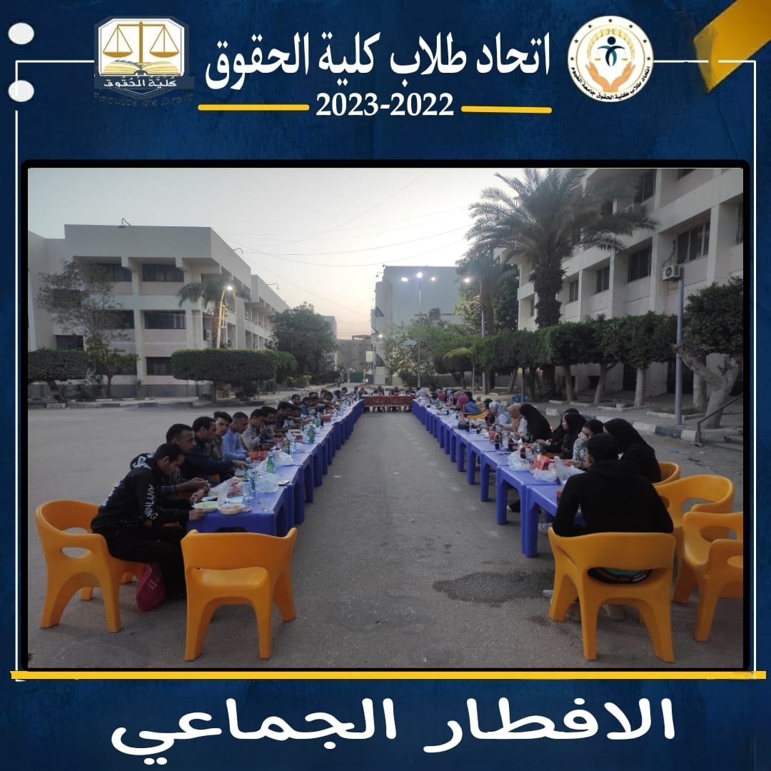 يعلن اتحاد طلاب كلية الحقوق عن إقامة إفطار جماعى بحرم الكلية ( طلبة _ عاملين _ أعضاء هيئة تدريس _ إدارة الكلية )