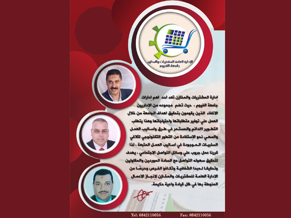 لذا تم إنشاء جروب على وسائل التواصل الاجتماعي يهدف لتحقيق سهولة التواصل مع السادة الموردين والمقاولين وتحقيقاً لمبدأ الشفافية وتكافؤ الفرص وحرصاً من الإدارة العامة للمشتريات والمخازن لإنجاز الأعمال المنوطه بها فى ظل قيادة واعية حكيمة.