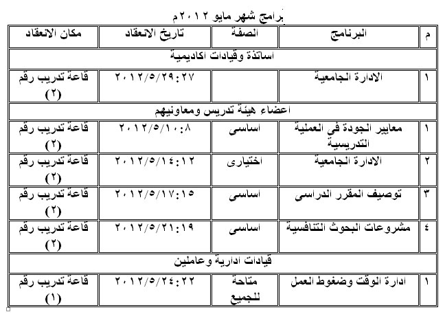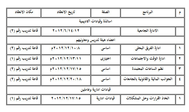 * فى حالة وجود عطلة رسمية او حدوث اى ظرف طارئ يتم ضغط البرنامج التدريبى فى يومين فقط باجمالى 15 ساعة تدريبية