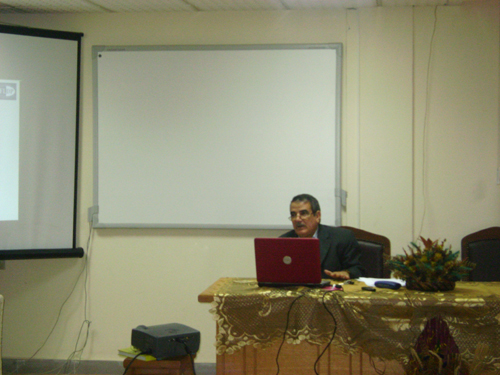 وقد حاضر اليوم الثالث للورشة د/ على عبد العظيم الاستاذ المساعد بقسم الدواجن كلية الزراعة وقد اكد سيادته خلال محاضرته على خصائص ومواصفات بنك الاسئلة والتى تماثل بنوك المعاملات المالية حيث انها تحفظ كمية هائلة من الاسئلة الموضوعية الجيدة واوضح فائدة بنك الاسئلة لكل من عملية التقويم والطالب كذلك لعضو هيئة التدريس.