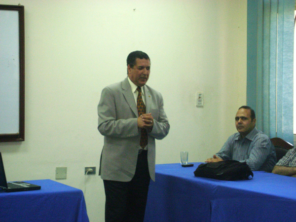 وقد حاضر اليوم الثانى للورشة د/ مصطفى محمد راضى واكد سيادته على كيفية وضع اسئلة الامتحانات بحيث تكون ممثلة للمقرر وقد ناقش سيادتة مع السادة المتدربين خصائص الممتحن ومسئولياته ووضح سيادته مواصفات جوهر ومضمون الورقة الامتحانية.