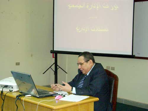 وأضاف سيادته أن رئيس الجامعة حريص جدا على دعم مثل هذه الدورات التي تهدف إلى تنمية مهارات العنصر الإداري مما يؤدى بدوره إلى إدارة العمل بشكل أكثر كفاءة وفاعلية. وقد تناولت الورشة بعض الموضوعات الهامة وهي:• طبيعة وخصائص الإدارة الجامعية. • الوظائف الأساسية للإدارة الجامعية (التخطيط والتنظيم والرقابة). • مشكلات الإدارة الجامعية (التشخيص والحلول). • الجوانب السلوكية وبناء فرق العمل. • القيادة الجامعية. • إدارة التغيير في الجامعات.