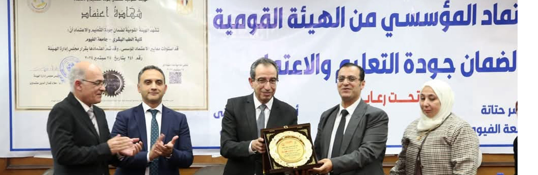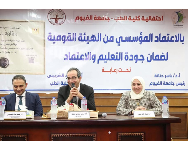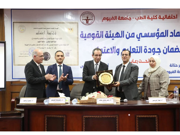 برعاية الأستاذ الدكتور / ياسر مجدي حتاته – رئيس الجامعة ؛ حضر الأستاذ الدكتور / تامر مجدي عيسى – مدير مركزضمان الجودة والتخطيط الاستراتيجي والمشرف على إدارة تطوير وتقويم الأداء لضمان الجودة احتفالية كلية الطب البشري – جامعة الفيوم ؛ وذلك يوم الأربعاء 11/12/2024 والمقامة بقاعة المؤتمرات في الكلية بمناسبة حصول الكلية على شهادة الاعتماد والجودة لمدة خمس سنوات من الهيئة القومية لضمان الجودة والاعتماد ؛ وقام معالي الأستاذ الدكتور / رئيس الجامعة والأستاذ الدكتور / عاصم فؤاد العيسوي – نائب رئيس الجامعة لشئون خدمة المجتمع وتنمية البيئة ورئيس مركز ضمان الجودة والتخطيط الاستراتيجي والأستاذ الدكتور / نجلاء الشربيني – القائم بأعمال عميد الكلية بتسليم درع التكريم للأستاذ الدكتور / تامر مجدي وتوجيه الشكر لسيادته تعبيرًا عن دوره في تقديم الدعم الفني على مدار ثلاثة أعوام جامعية ومراجعة الملفات أثناء تقدم الكلية للاعتماد .
