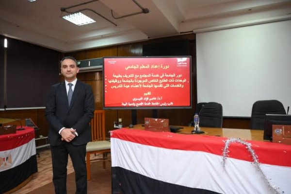 التقى الأستاذ الدكتور/ عاصم العيسوي نائب رئيس جامعة الفيوم لشئون خدمة المجتمع وتنمية البيئة، بعدد من السادة أعضاء هيئة التدريس والهيئة المعاونة بالجامعة خلال دورة إعداد المعلم الجامعي بكلية التربية الدورة الرابعة والخمسين لإعداد المعلم الجامعي اليوم الأثنين 17نوفمبر 2025 بقاعة المؤتمرات بكلية التربية.