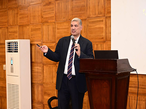 تحت رعاية السيد الأستاذ الدكتور/ ياسر مجدي حتاته؛ رئيس جامعة الفيوم، قام السيد الأستاذ الدكتور/ عرفة صبري حسن؛ نائب رئيس الجامعة لشؤون الدراسات العليا والبحوث والمشرف على كلية دار العلوم، بإلقاء محاضرة بعنوان "Scientific writing" ضمن فعاليات ورشة العمل الَّتي نظَّمتها كلية طب الأسنان بالتّعاون مع كليّتَي الصّيدلة والتّمريض، وذلك في تمام السّاعة العاشرة والنّصف من صباح يوم الأحد الموافق 24 أغسطس ٢٠٢٥م بمبنى كلية طب الأسنان، بحضور كلٍّ من: أ.د/ لمياء أحمد إبراهيم؛ عميد كليّة طب الأسنان، أ.د/ محمد عبد الله حمزاوي؛ القائم بأعمال عميد كلية الصّيدلة، أ.د/ شربات ثابت حسنين؛ القائم بأعمال عميد كلية التمريض، أ.د/ نيروز عبد الفتاح محمد؛ وكيل كلية طب الأسنان لشؤون الدراسات العليا والبحوث، أ.د/ سلوى عطية محمد؛ القائم بأعمال وكيل كلية التمريض لشؤون الدراسات العليا والبحوث، د/ محمد إبراهيم؛ القائم بأعمال وكيل كلية الصيدلة لشؤون الدراسات العليا والبحوث، وعدد من السّادة رؤساء الأقسام وأعضاء هيئة التدريس ومعاونيهم وبعض الدارسين بكليات (طب الأسنان، الصيدلة، والتمريض).