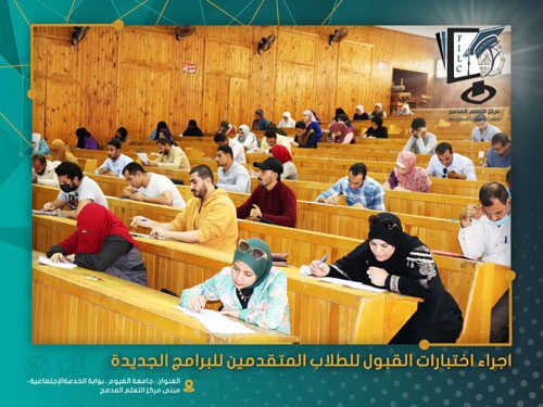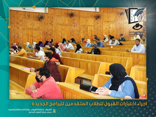 تم اليوم الاثنين الموافق 15/11/2021 إجراء اختبارات القبول للطلاب المتقدمين الجدد للبرامج الجديدة بنظام التعلم المدمج بمدرجات كلية السياحة والفنادق جامعة الفيوم .
