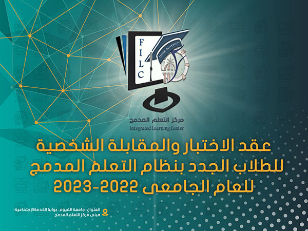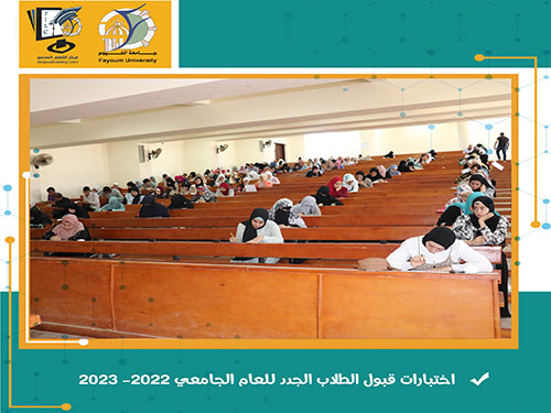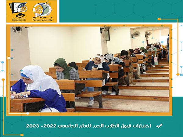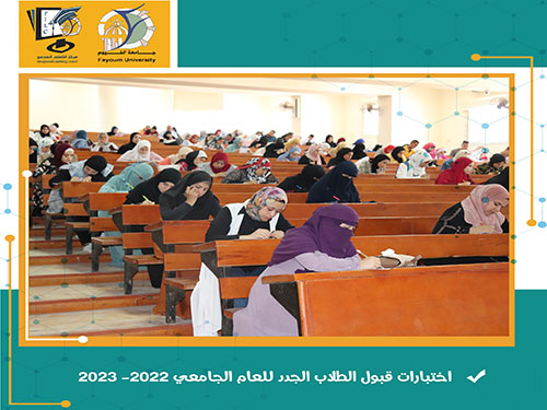 تم يوم الأحد الموافق 19/09/2022 إجراء اختبارات القبول للطلاب المتقدمين الجدد للبرامج الجديدة بنظام التعلم المدمج بمبنى المدرجات المركزية جامعة الفيوم .