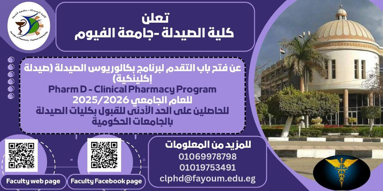 فتح باب التقدم لبرنامج بكالوريوس الصيدلة ( صيدلة- إكلينيكية)