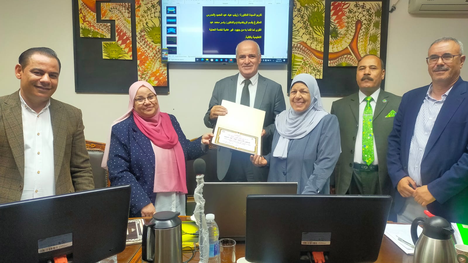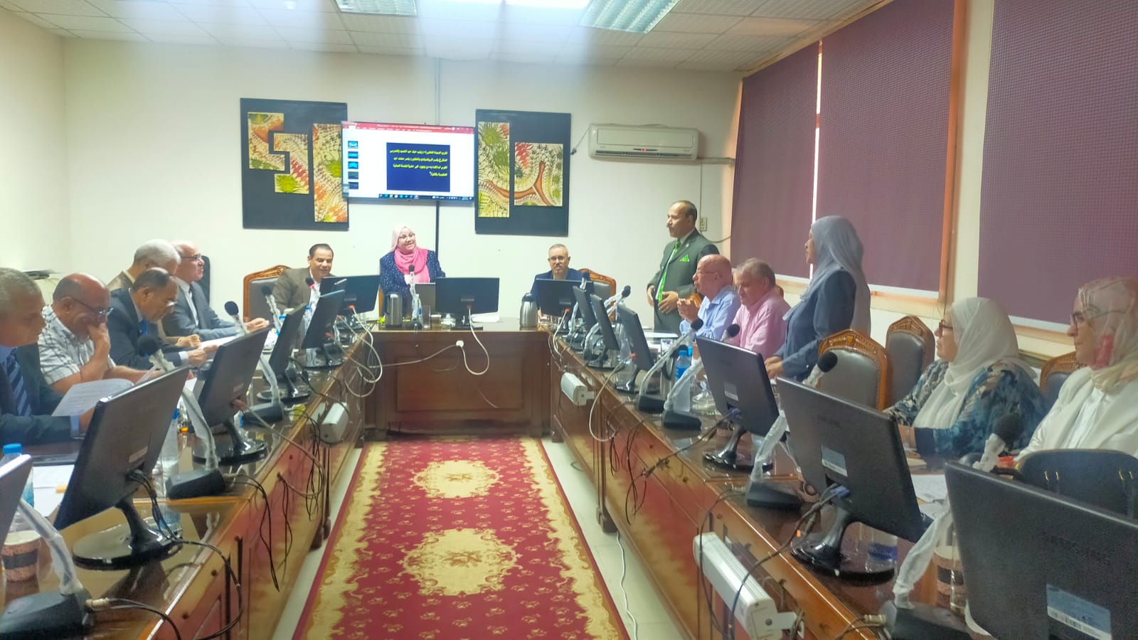 الأحد الموافق : ـ 20/7/2025م تم عقد اجتماع مجلس الكُلية في تمام الساعة الحادية عشر صباحًا بقاعة مجلس الكُلية برئاسة السيدة الأستاذة الدكتورة/ سميه السيد جوده (عميد الكُلية) . حيث استهلت سيادتها اجتماع المجلس بالترحيب بالسادة الأساتذة الحضور أعضاء المجلس الموقر،ثم قامت بالتصديق على محضر الجلسة السابقة ومُناقشة جدول أعمال المجلس، الموضوعات الواردة من لجنة الدراسات العُليا و البحوث، الموضوعات الواردة من لجنة شئون التعليم والطُلاب، و الموضوعات الواردة من لجنة شئون خدمة المُجتمع وتنمية البيئة بالإضافة إلى موضوعات الكادر الخاص وموضوعات العلاقات الثقافية وعلى هامش المجلس تم تكريم الدكتورة / زينب عياد عبد الحميد والدكتور/ ياسر محمد عبد القوى لما قاما به من جهود غير عادية لخدمة العملية التعليمية بالكلية.