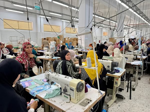 اصطحب فريق المؤسسة الوفد في جولة داخل المصنع، حيث تمت زيارة صالات التدريب على الخياطة، والتي تنقسم إلى: