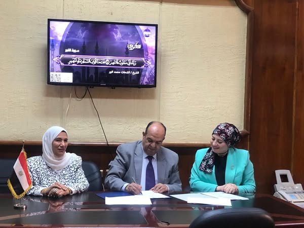 توقيع بروتوكول تعاون بين كلية الخدمة الاجتماعية ومؤسسة النداء بمقر مصنع الغزل والنسيج