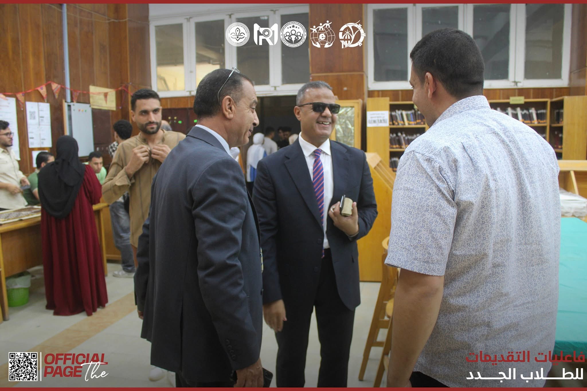 في إطار حرص الكلية علي مصلحة الطلاب قام الأستاذ الدكتور /ناصر عويس عبدالتواب عميد الكلية والأستاذ الدكتور /يوسف محمد عبدالحميد وكيل الكلية لشئون التعليم والطلاب بجولة ميدانية لمتابعة تقديمات طلاب الفرقة الأولى الجدد و رافقهم خلال الجولة الأستاذ /عبدالفتاح المليجي مدير عام الكلية