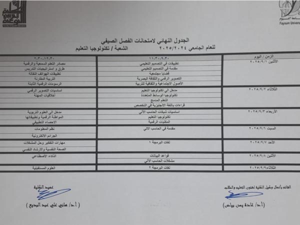 إعلان هام للطلاب ( جداول إمتحانات الفصل الصيفي الثلاث أقسام 2025م )